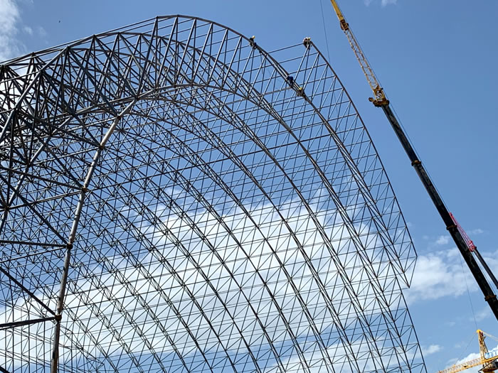 (2)网架加工前应对现场尺寸进行复测,确认无误后方可进行加工、安装;网架制作、运输、安装应遵守《空间网格结构技术规程》JGJ7-2010、《钢网架新疆螺栓球节点》JG/T 10-2009、《钢网架新疆螺栓球节点用高强度螺栓》 GB/T 16939-2016、《新疆钢结构新疆工程新疆施工规范》 GB50755-2012、《新疆钢结构新疆工程新疆施工质量验收标准》 GB50205-2020。